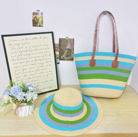 All'ingrosso borsa da spiaggia estiva con borsa da mare fatta a mano grande in paglia Set cappello da donna